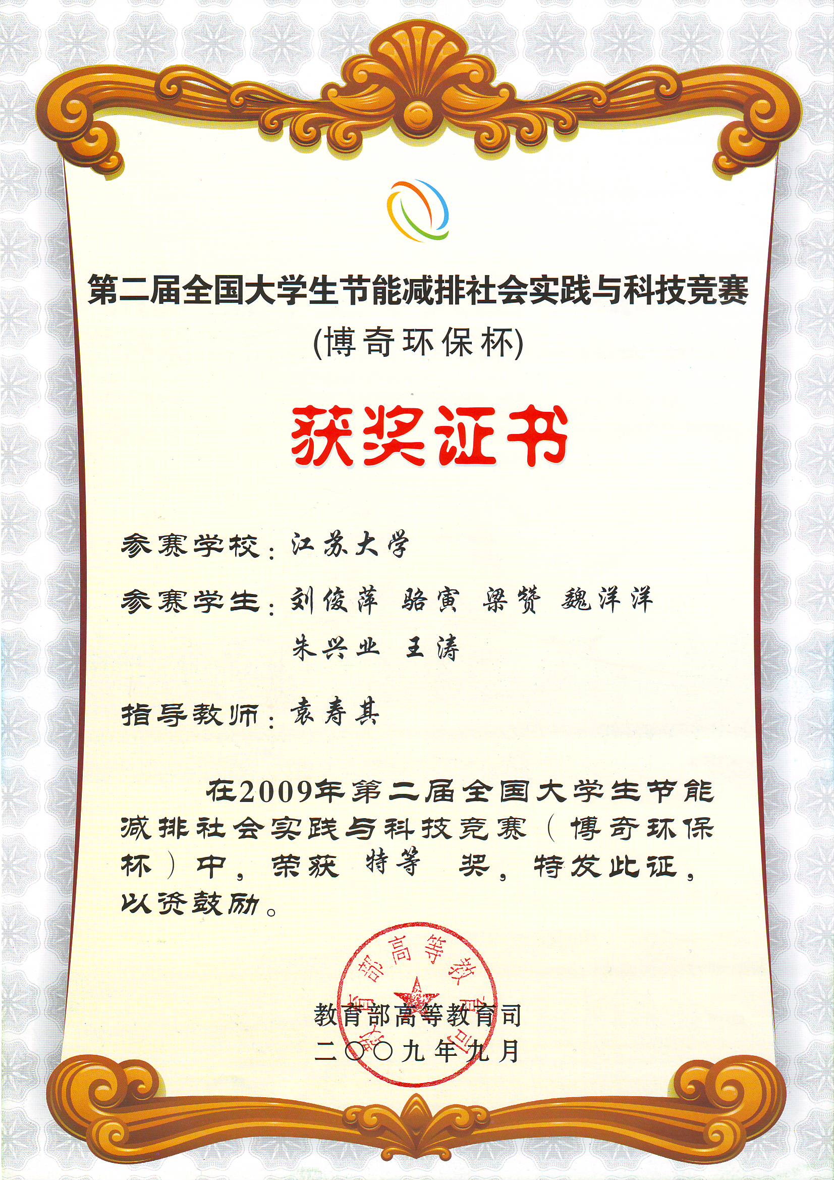 第二節(jié)全國大學(xué)生節(jié)能減排社會(huì)實(shí)踐與科技作品競賽特等獎(jiǎng)